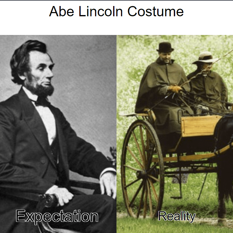 I had some close shaves with getting to wear a suit back in the day though. I remember being picked to play the role of Abraham Lincoln for a school play once, and one of the things I was looking forward to about the whole thing was getting to wear a suit, or a costume facsimile of one. Unfortunately for me, the only thing the costume rental place had was a weird stagecoach driver costume made of nylon or polyester or something, and it was a few sizes too big. It did come with a top hat though, so with that and a fake beard, I made for a passable Lincoln.